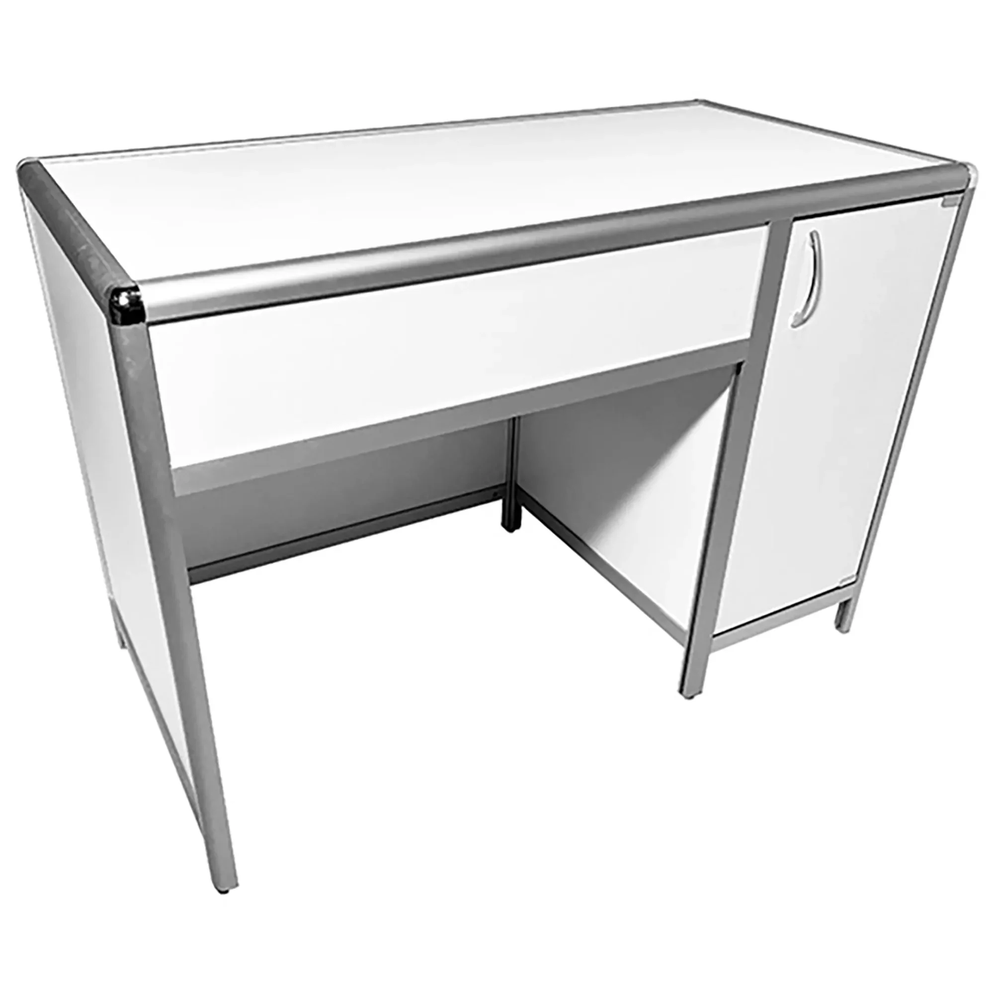 Стол лабораторный MED 10.004al (белый) — это надежное и универсальное решение для создания комфортного рабочего пространства сотрудников в лабораториях и медицинских учреждениях. Модель оснащена удобной тумбой с распашной дверкой и полкой внутри, расположенной справа. Каркас выполнен из алюминиевого профиля, столешница из ЛДСП толщиной 16 мм.