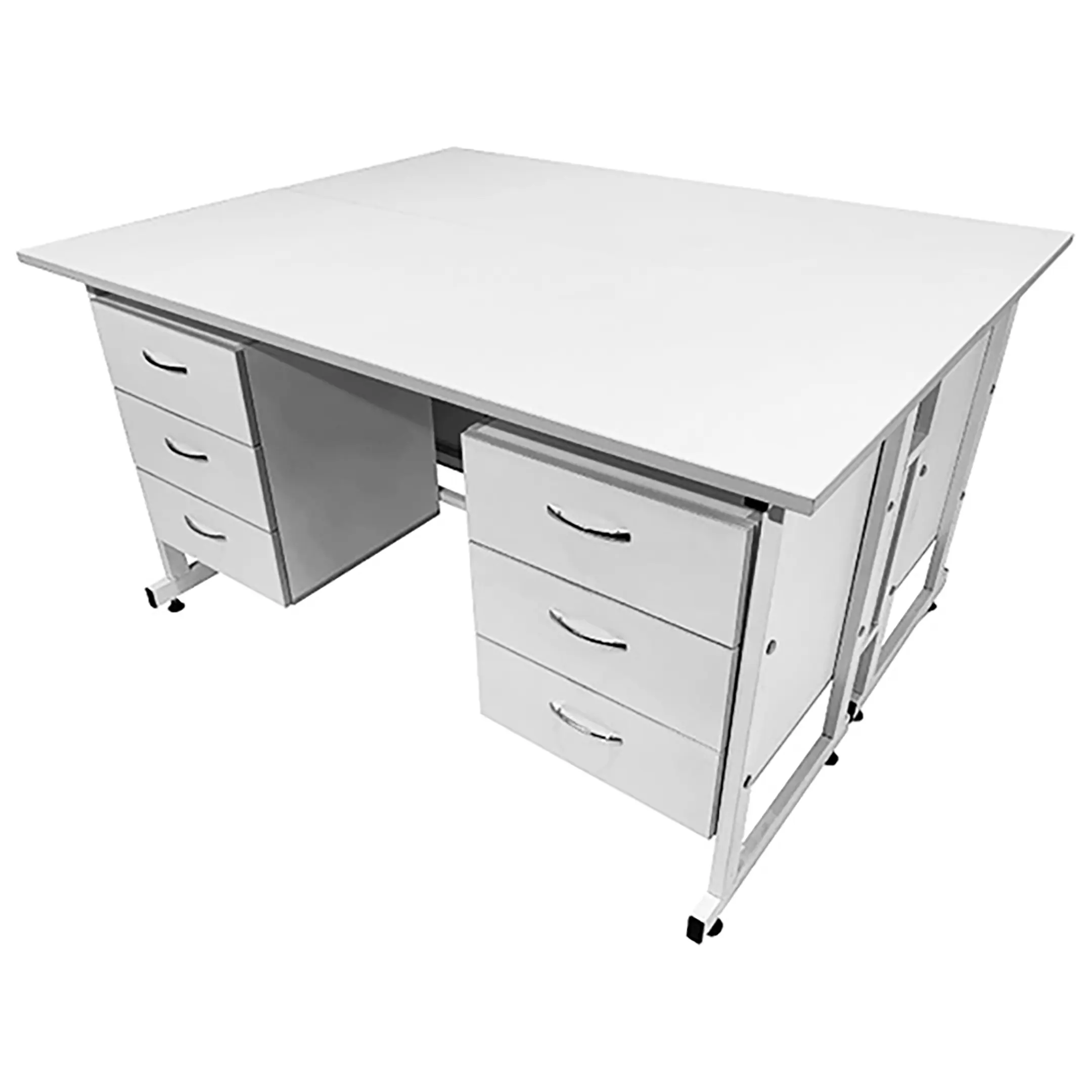 Стол лабораторный островной Сло 22.005 (белый) — это идеальное решение для организации двух рабочих мест в лаборатории, медучреждениях или других подобных местах. Модель поможет максимально эффективно использовать пространство помещения благодаря своей функциональности. Каждое рабочее место оборудовано двумя подвесными тумбами, каждая с тремя выдвижными ящиками. Каркас выполнен из стального профиля, столешницы из ЛДСП толщиной 22 мм.
