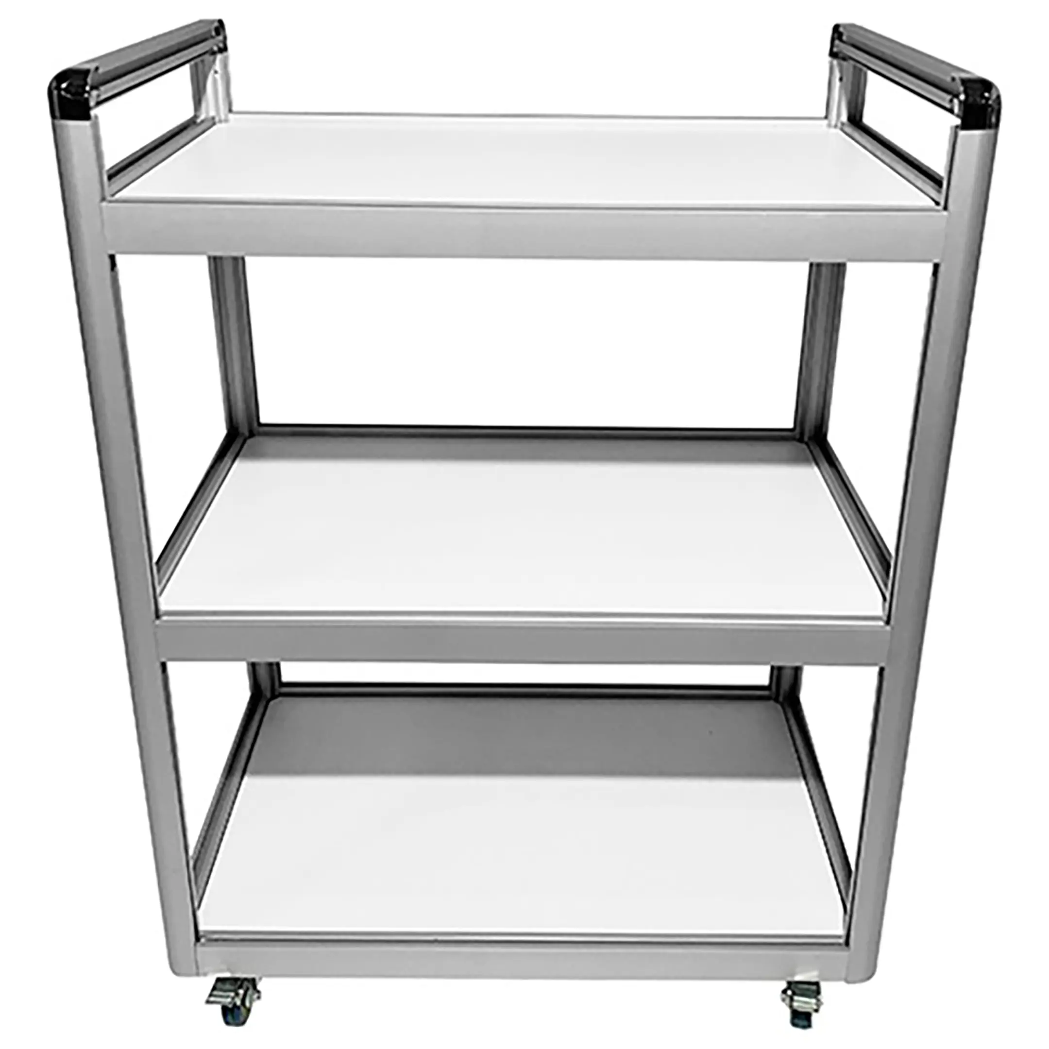 Столик лабораторный подкатной MED 14.001al (белый) является идеальным решением для временного размещения и удобного перемещения инструментов, предметов или приборов в медицинских учреждениях и лабораториях. Модель оснащена тремя полками из ЛДСП и двумя удобными ручками для транспортировки. Каркас выполнен из алюминиевого профиля.