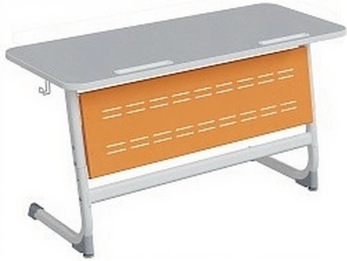 Стол 2-местный школьный 3-5 г/р "Логика" с наклоном столешницы 0-15° и перфорированным экраном (серый/оранжевый, м/к белый)