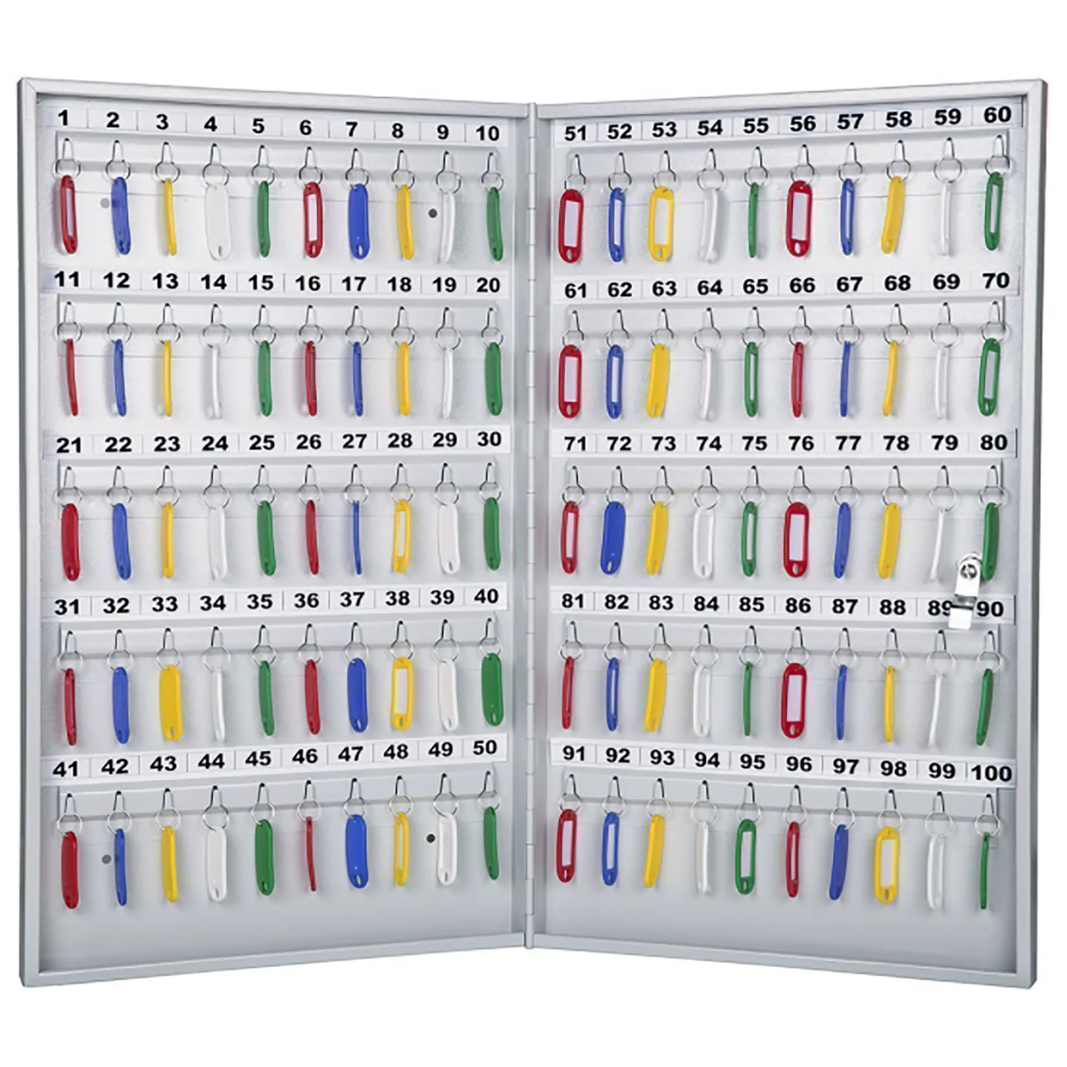 - Четкий контроль и простой учет — система с пронумерованными брелками и соответствующими ячейками позволяет легко идентифицировать каждый ключ, вести его учет в журнале и контролировать, кто и когда его получил или вернул. Это исключает путаницу и обеспечивает ответственность персонала.