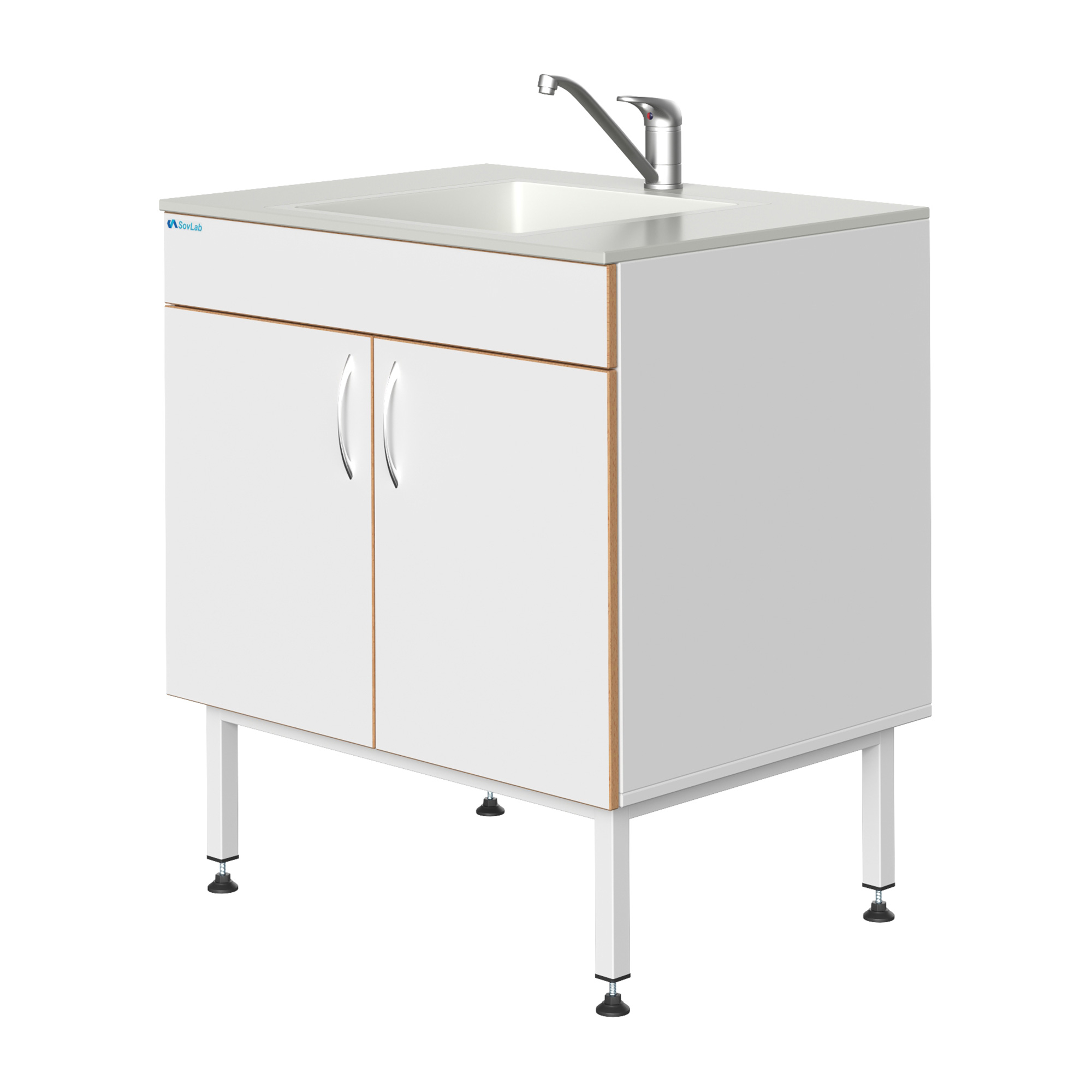 Мойка СОВЛАБ 800 МПП врезная п/пропилен — это компактное специализированное лабораторное оборудование, предназначенное для качественной и безопасной мойки лабораторной посуды, приборов и инструментов. Модель оснащена одинарной врезной чашей из полипропилена, смесителем и всей необходимой арматурой для подключения к инженерным сетям. Тумба из влагостойкого ДСП установлена на прочный металлический каркас с регулируемыми опорами.