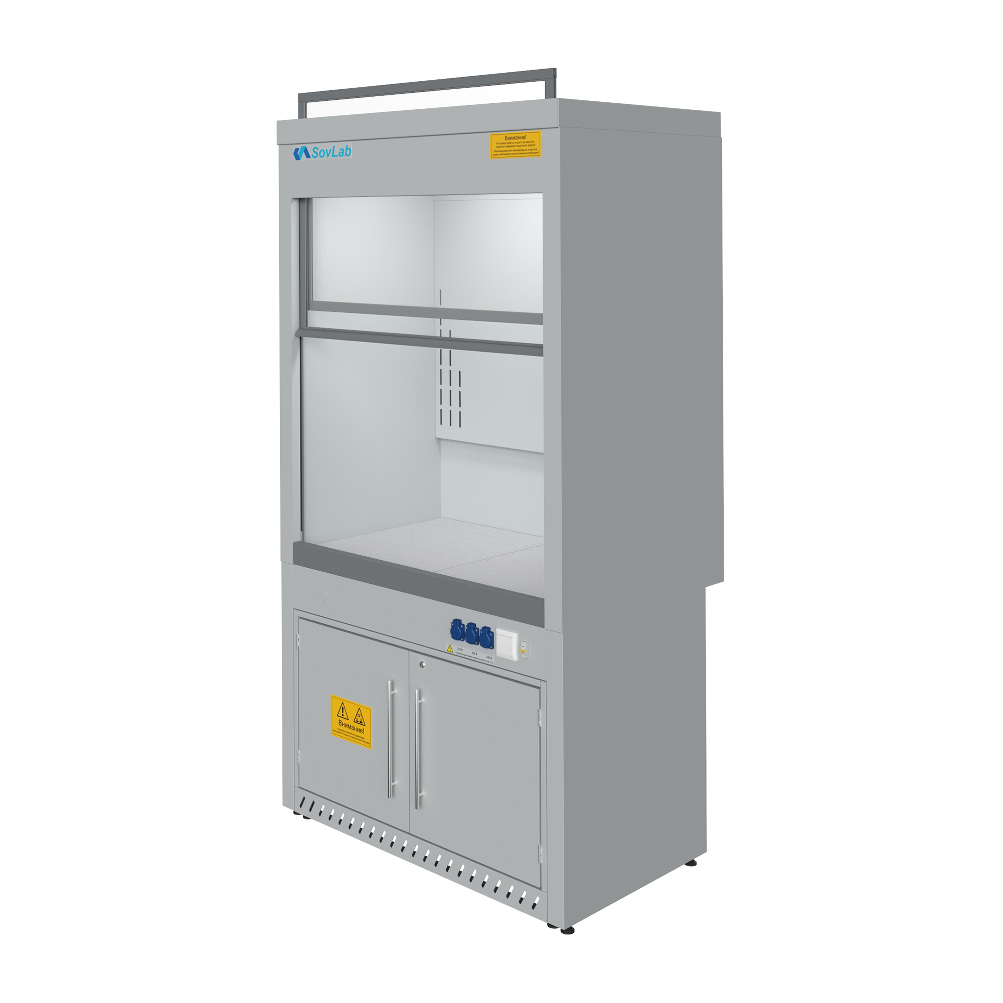 - Защитный экран — подъёмная фронтальная панель обеспечивает безопасный доступ к рабочей зоне при проведении лабораторных операций.