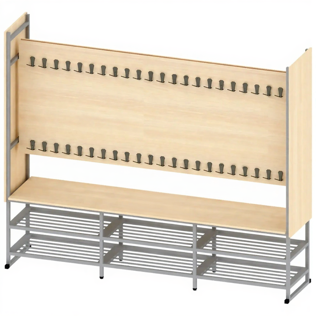 - Практичность — идеальное решение для организации пространства школьного гардероба.