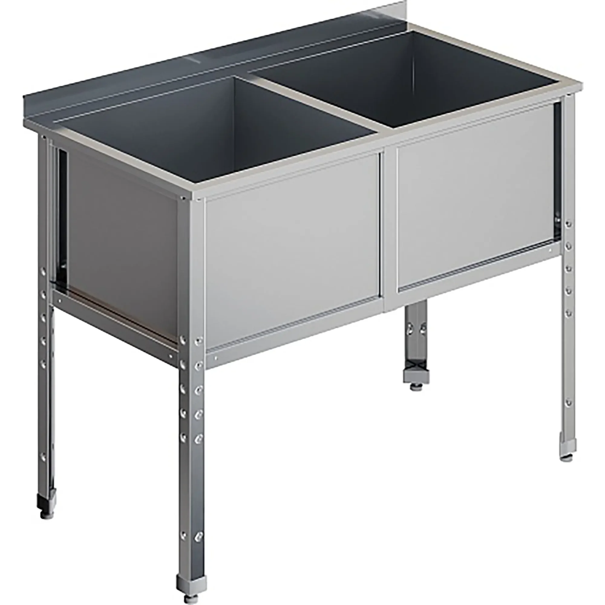 Ванна моечная двухсекционная с бортом ВМС-2/8-Б-ЭЦ разработана для применения в моечных отделениях предприятий общепита и торговли различного формата, пищевых производств и пищеблоков для мытья посуды, кухонного инвентаря, продуктов питания и рук персонала.