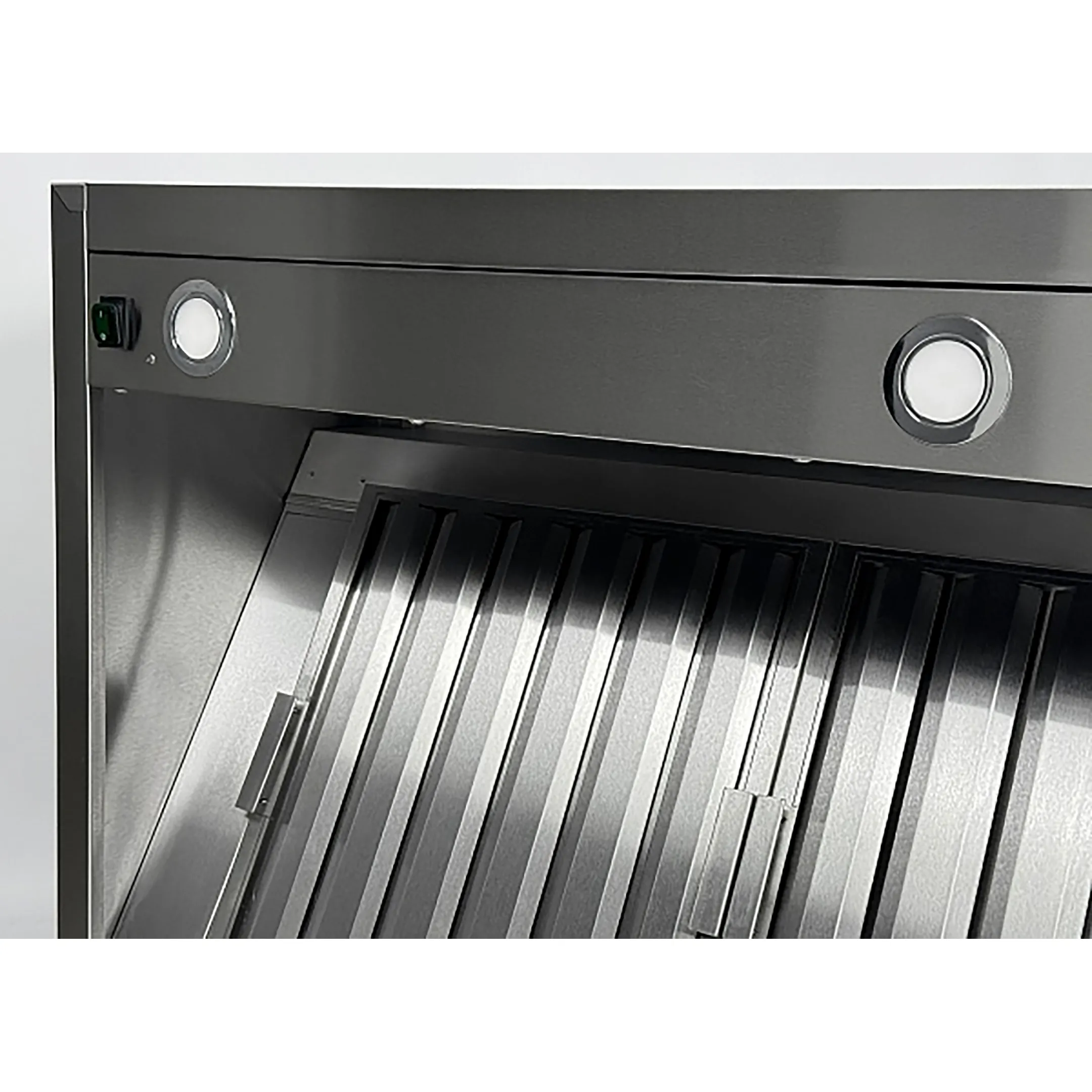 • В комплект включены съемные лабиринтные фильтры из нержавеющей стали Aisi 430, подсветка и сливной кран.