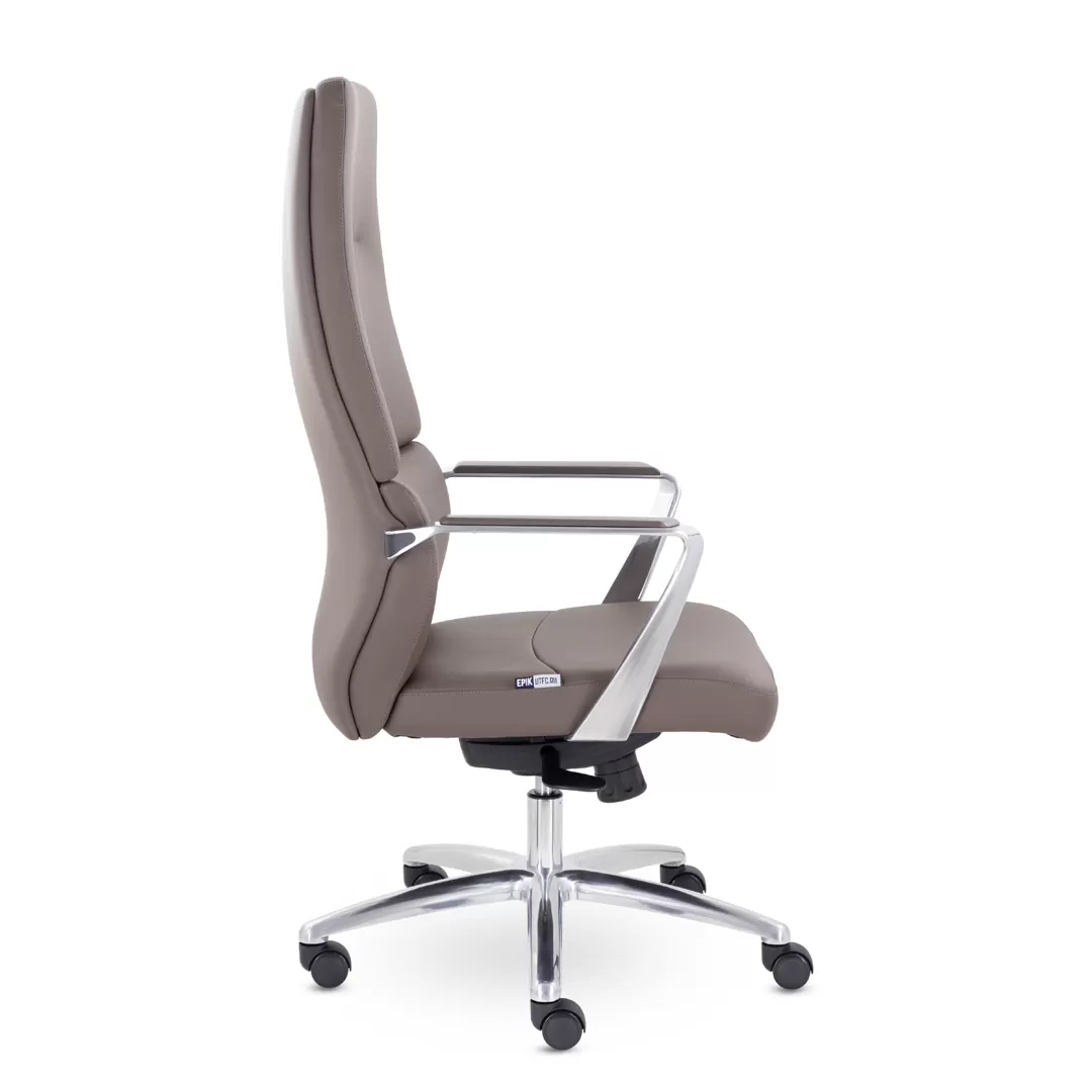 Кресло EPIK A‑130‑G (коричневый) — стильное и удобное кресло руководителя с мягкой обивкой из экокожи и устойчивой конструкцией. Модель сочетает продуманный дизайн, комфорт посадки и функциональные элементы, что делает её отличным решением как для офисных кабинетов, так и для домашних рабочих зон.