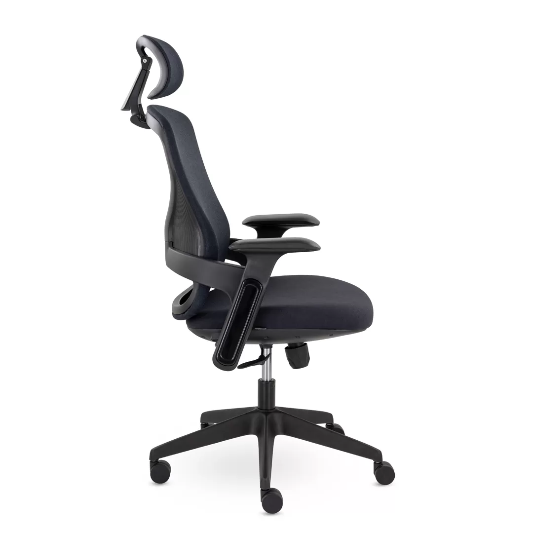 - Современный дизайн — черный каркас и лаконичные линии создают аккуратный, стильный и профессиональный внешний вид кресла.