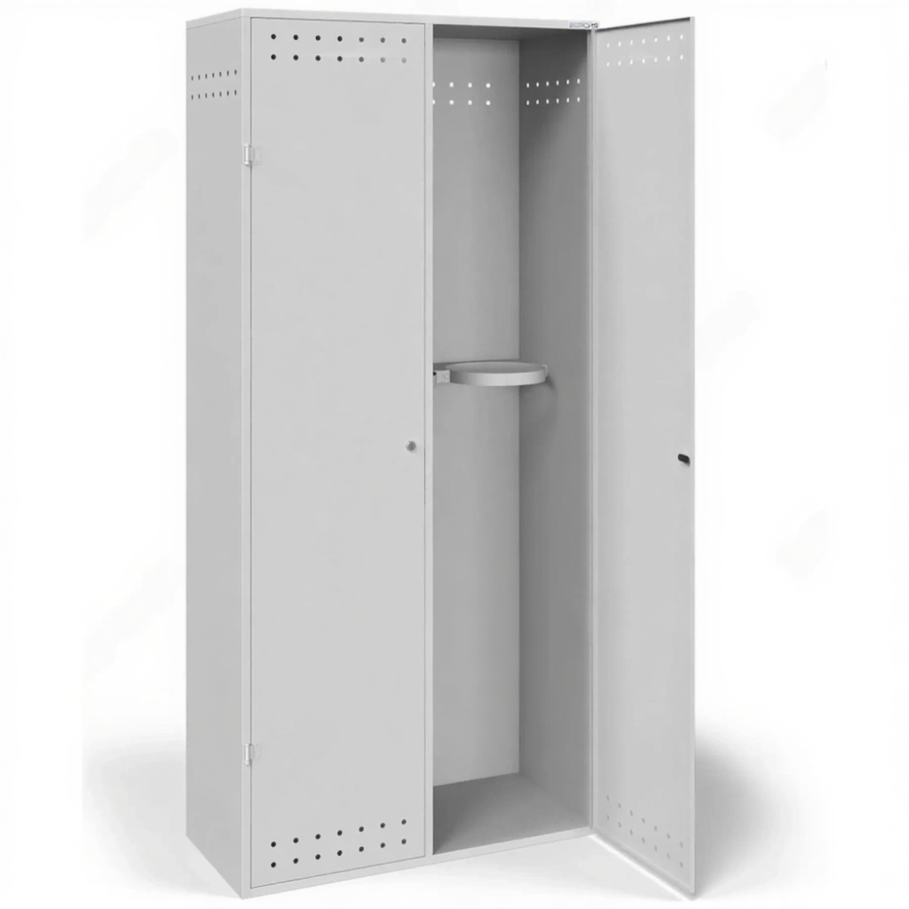 - Надежная защита от хищений и вандализма — усиленная сварная конструкция, массивные сварные петли и возможность установки серьезных запорных устройств (врезные замки, навесные замки повышенной секретности) делают этот компактный шкаф настоящим сейфом для газовых баллонов, эффективно защищающим дорогостоящее имущество.