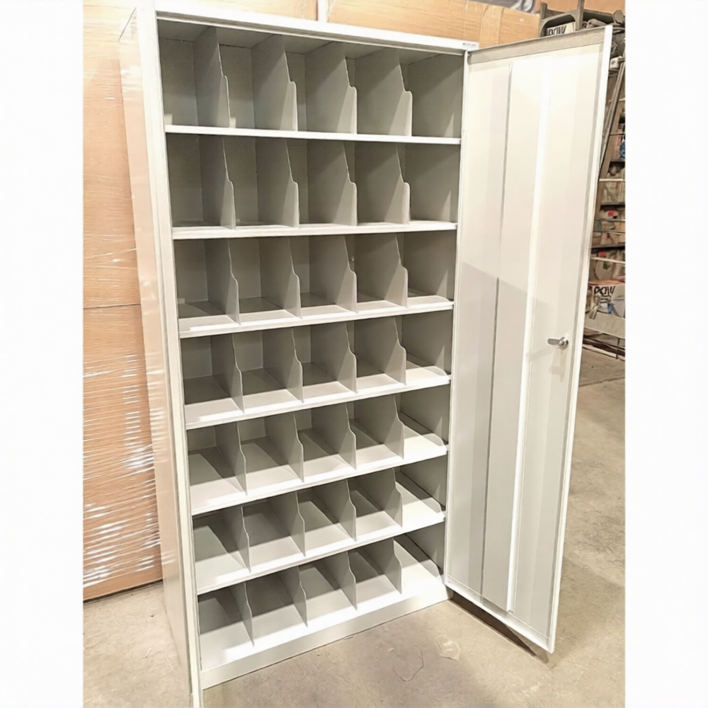 • 35 ячеек, две дверцы, скошенные полки для удобства хранения СИЗ.