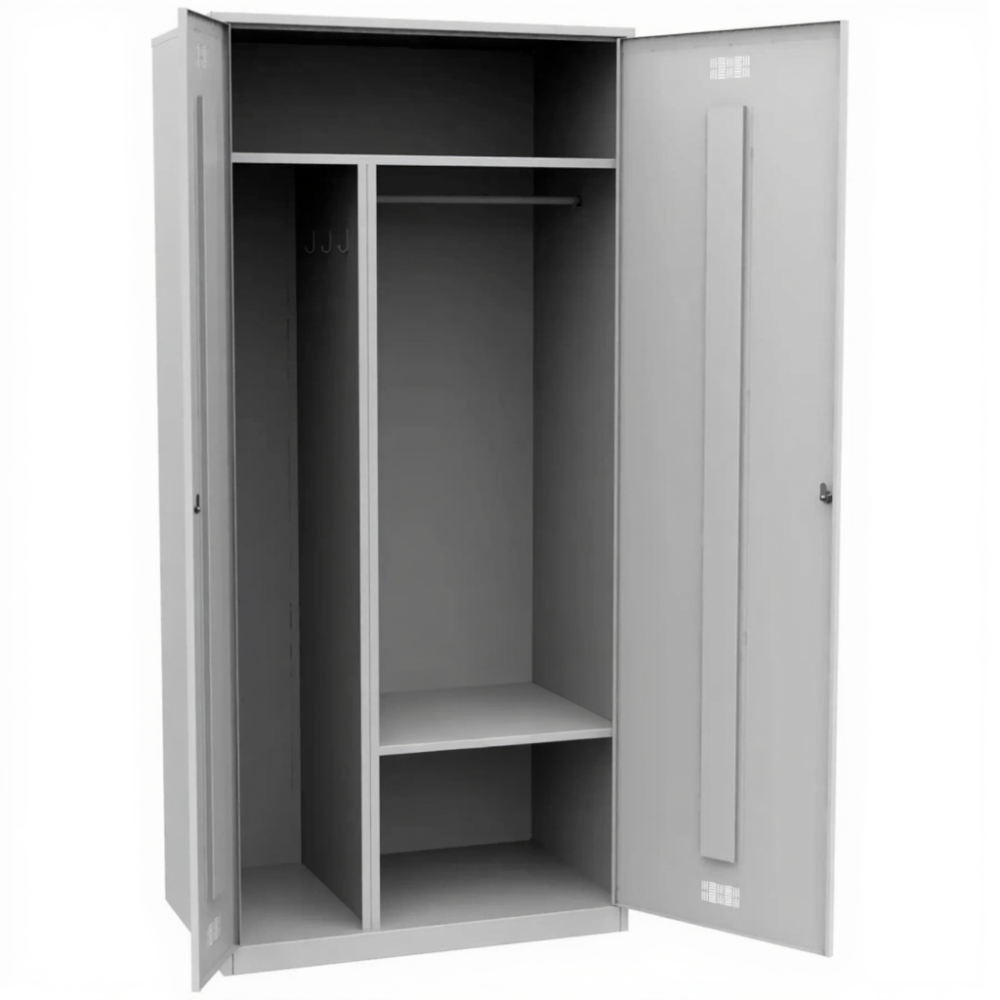 • Металлические шкафы для одежды предназначены для установки в раздевалках и позволяют хранить верхнюю одежду, обувь, головные уборы, спецодежду и личные вещи. Шкафы могут устанавливаться в офисах, аквапарках и бассейнах, фитнес-центрах и спортивных комплексах, школах и прочих образовательных учреждениях. Модель прекрасно подходит для оборудования раздевалок на различных промышленных и торговых предприятиях. Позволяет хранить как чистую, так и грязную одежду.