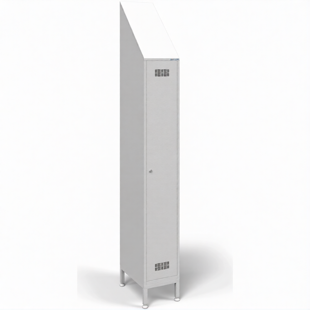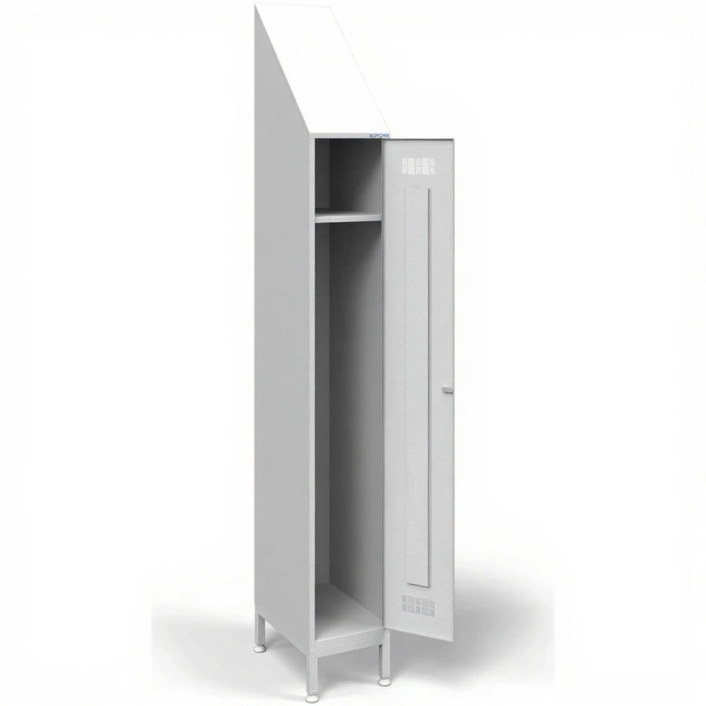 • Шкаф для одежды одностворчатый односекционный со скошенной крышей устанавливаться в условиях ограниченного пространства. Угол наклона крыши - 45°.