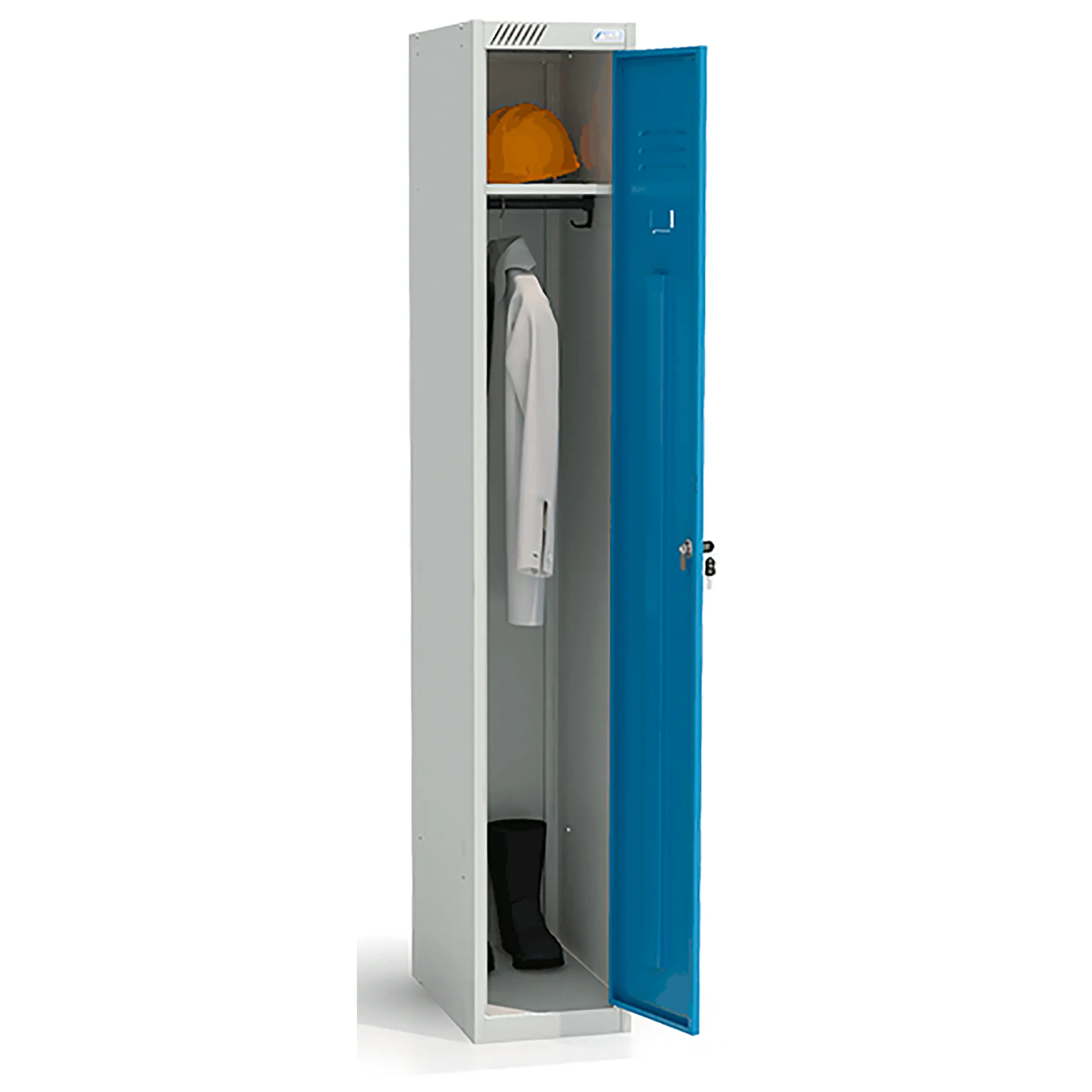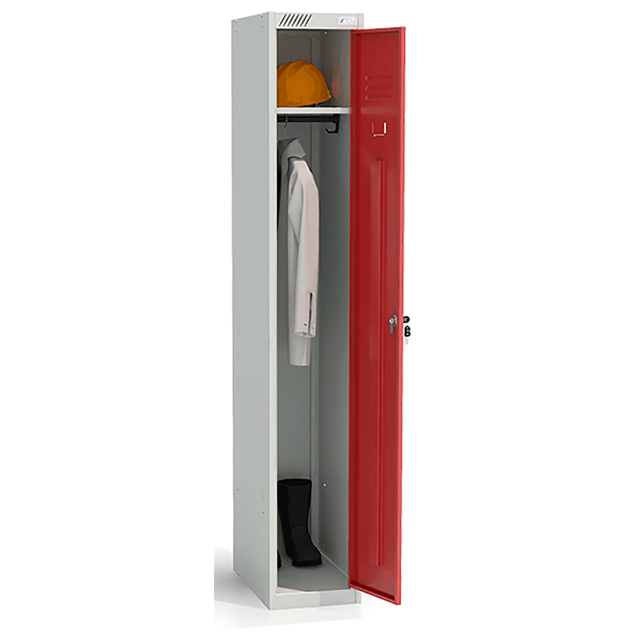 Металлический модульный шкаф для одежды ШРС-11-300 используется для хранения сменной одежды в офисных, производственных, спортивных помещениях.