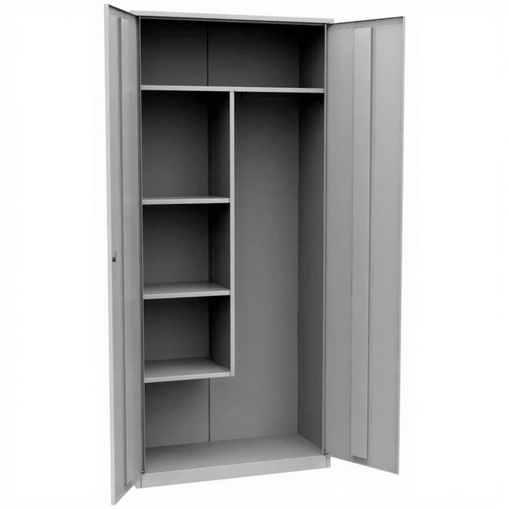 - Удобство использования в школьной инфраструктуре — оптимальные габариты позволяют разместить шкаф в подсобных помещениях, санузлах, гардеробных и других служебных зонах учебных учреждений, обеспечивая при этом достаточный объем для хранения всего необходимого инвентаря для поддержания чистоты в школе.