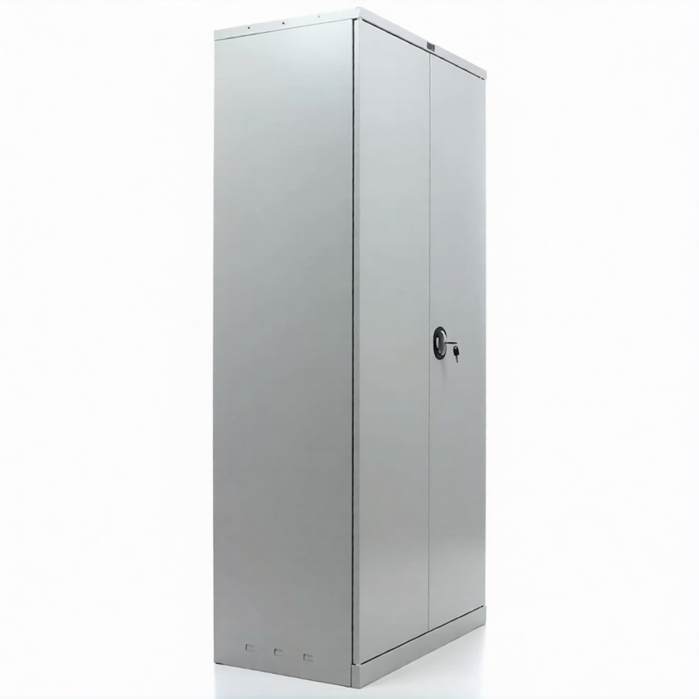 - ригели из оцинкованной стали и пластиковые втулки обеспечивают бесшумный ход дверей и надежное запирание шкафа;