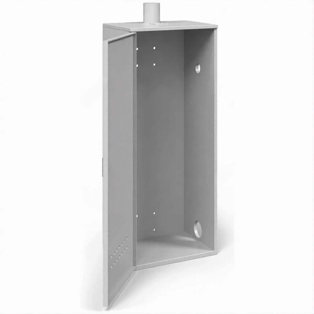 - Надежная защита и удобство эксплуатации — шкаф запирается на замок, защищая баллон и дорогостоящую арматуру от краж и несанкционированного вмешательства. При этом пользователь имеет постоянный доступ к управляющим элементам редуктора (при его наружном размещении) или может легко провести замену баллона, открыв дверцу.