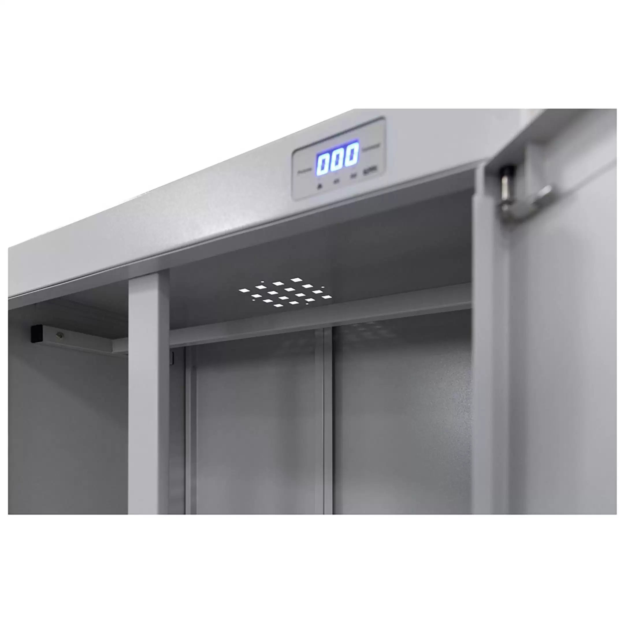 - Высокая производительность и вместимость — шкаф рассчитан на загрузку значительных объемов одежды, белья, обуви и инвентаря за один цикл, что позволяет эффективно обслуживать большие коллективы на предприятиях, в стационарах, спортивных базах или гостиницах.
